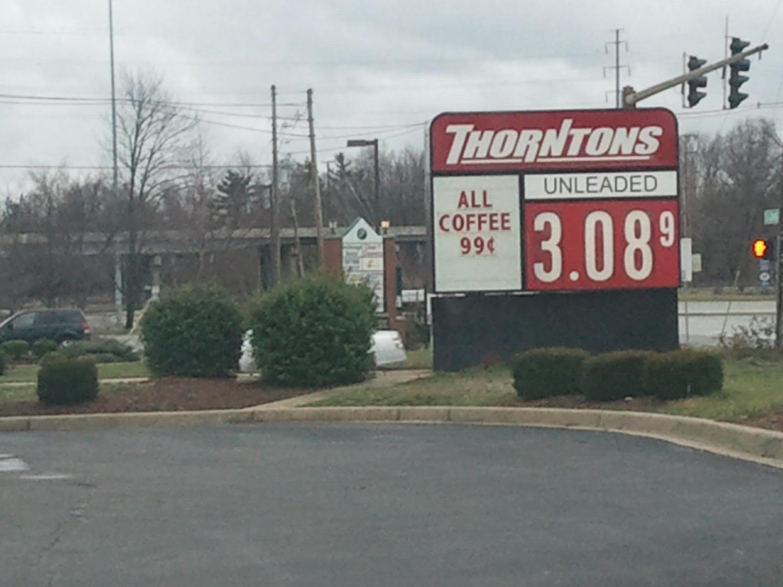 -Get you gas in Louisville! Seriously. Here's the sign at the Thorton's near JAML Corparate HQ's in the east end: